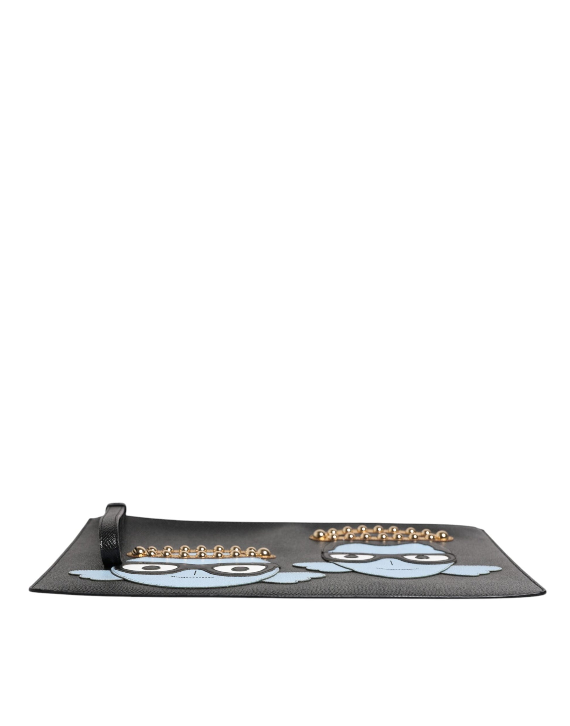 Dolce & Gabbana Black Leather #DGFAMILY Embellished Men Zip Pouch Bag